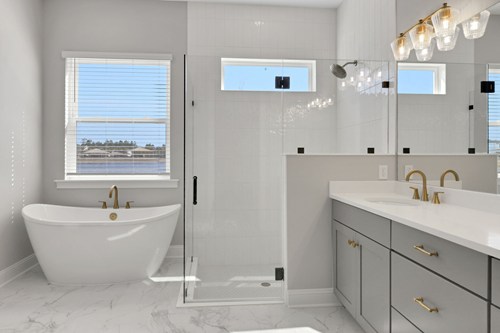 The Faulkner is a 1-story home with 2,729 sq. ft., 4 bedrooms and 4 baths. Upon entering the foyer, a gallery and flex room are adjacent to the 4th bedroom and full bath creating a secluded suite on the front of the home. The kitchen, dining and great room are perfect for entertaining with a large covered lanai located at the rear of the home. The master suite and ensuite bathroom has a huge walk-in closet for the homeowner. Two secondary bedrooms share a hall bath. A family foyer and separate laundry room are located in a private area of the home. An optional bonus room and bath upstairs makes this the perfect family home over looking Reflections Pond.