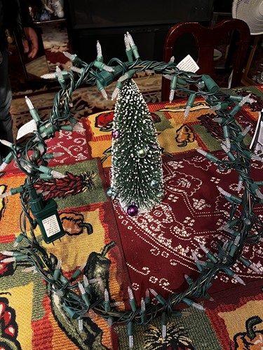 First, you will need to unfold the wire hanger; we suggest doing a bunch at once. Wrap your lights clockwise fashion, and then roll the wire around compactly, and you are done!