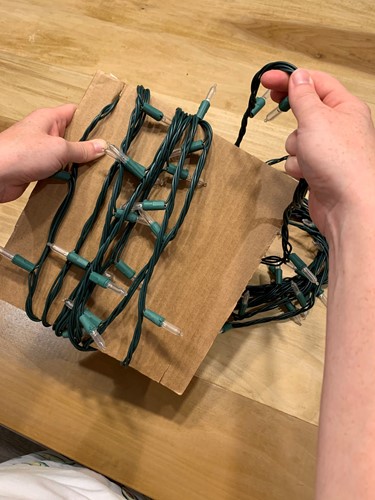 This hack is also simple; instead of stuffing the boxes with the lights, wrap them around the box and cut a notch to anchor the lights in place. That’s it, lights check!