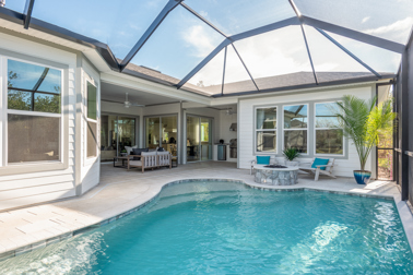 While you’ll never run out of entertaining space, we do encourage you to take the party outside to enjoy the full benefits of Florida living. The Acadia model home features a large patio area, pool, and a cabana with a full bath.