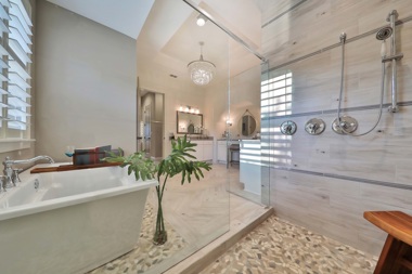 When it comes to designing a beautiful master bathroom retreat, there are many ways to infuse your own personal style. This may include adding aromatherapy candles or hanging a soothing piece of art above the bathtub. A more permanent way to create a master retreat is to include decorative lighting.