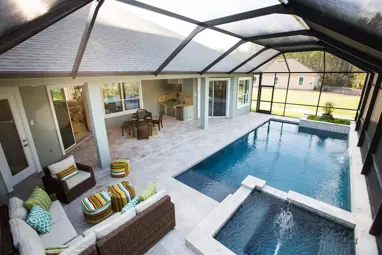 It’s no secret that we (and many others) have a soft spot for the Acadia home plan, after all it features ample living space - but have you seen the outdoor area? You’ll have plenty of room for a pool, outdoor kitchen and dining area, and if you opt for the air conditioned cabana, you can be close to the game too. Plan your next intimate gathering with your closest friends in the backyard of the Acadia.