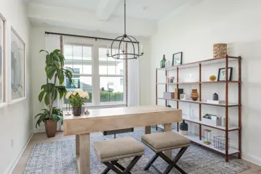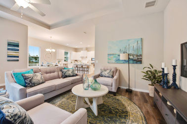 If you aren’t ready to permanently commit to a color, the addition of colorful home décor can add just the right amount of vibrancy. The colorful pillows and rug in the living room from our Beaufort home in Wildlight, Florida adds just the right amount of excitement without adding any paint to the walls.